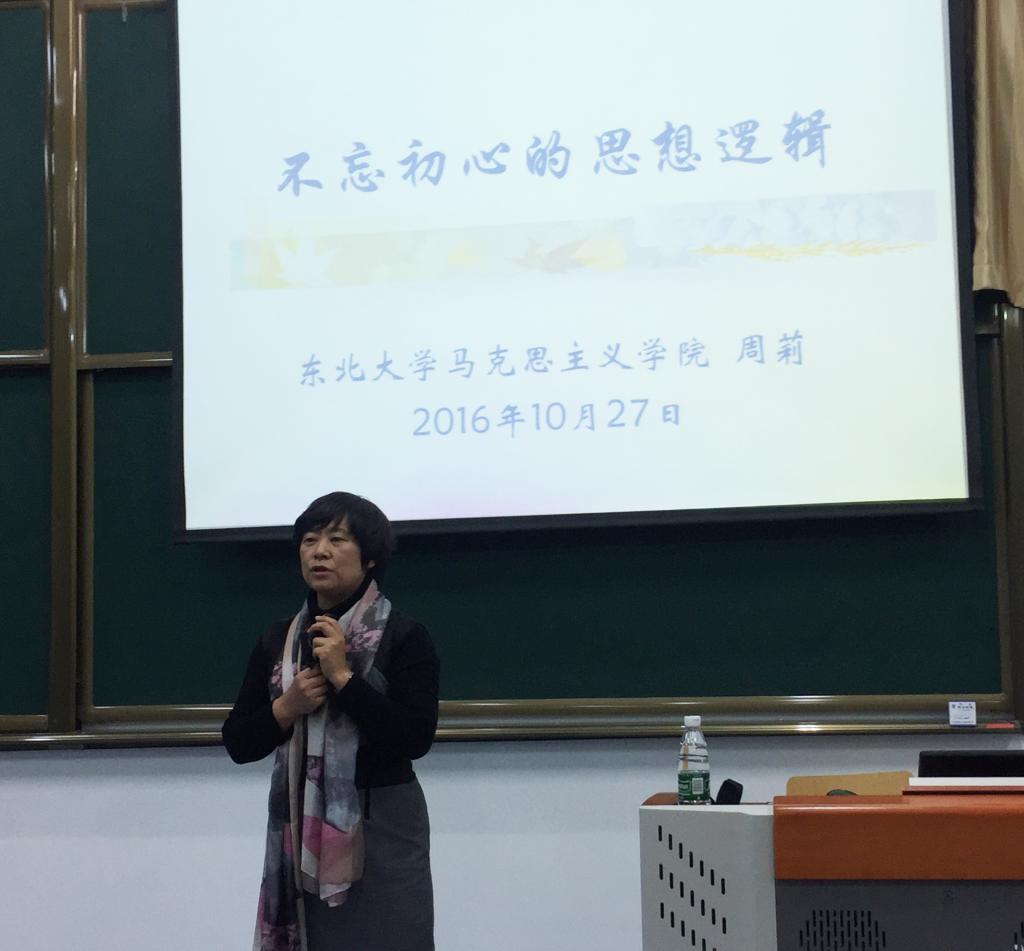讲座伊始,周莉教授以马克思、列宁、斯大林、毛泽东以及广大中国共产党的光辉历程与艰苦岁月为起始,引入树立目标的重要思想,并进一步强调其对身为社会主义新青年的同学们具有重大意义。接下来,她由个人到社会,指出经济文化建设也要立足并牢记初级阶段,时刻践行实事求是的干练作风。最后,周莉教授立足实际,深刻剖析了中国经济社会发展状况及改革开放以来中国历年GDP变化,彰显了坚持改革开放,加强思想道德修养,树立和培育社会主义核心价值观以及建设中国特色社会主义的重要性,令“不忘初心”的精神再度明晰与升华。