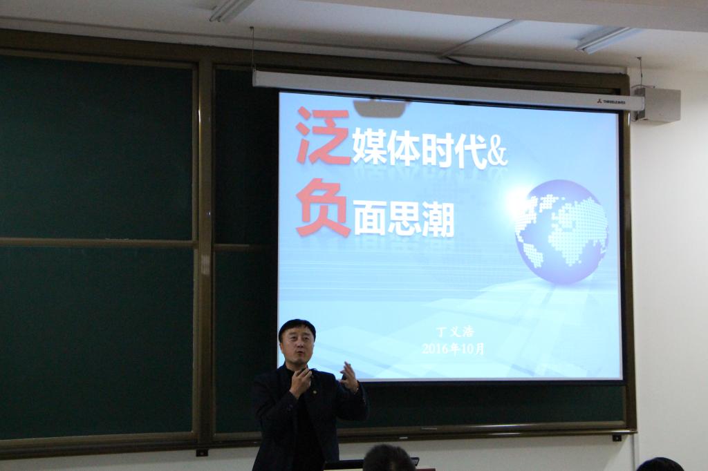 11月2日晚6时30分,beat365正版唯一官网党委宣传部部长丁义浩于信息学馆A308室为第九期青马学员带来“泛媒体时代和负面思潮”主题讲座,青马学员悉数到场。