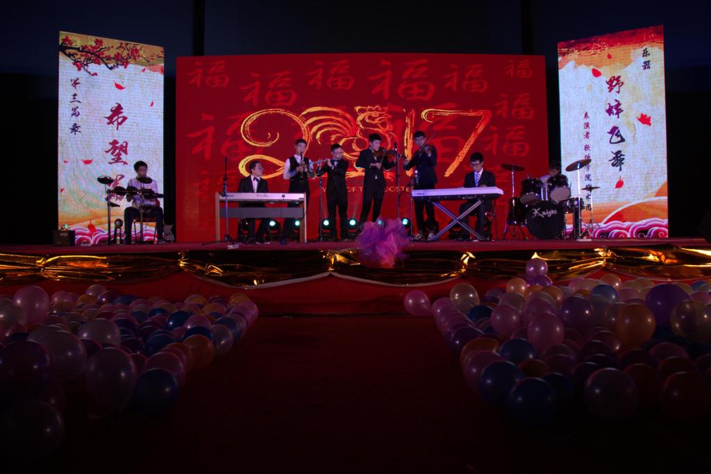 本次元旦晚会分为启航、逐梦、希望三个篇章,包括乐器类、语言类与歌舞类等在内的15个节目,并设置了抽奖环节。独具创意的音乐电台、别有韵味的民舞表演、令人啼笑皆非的小品,还有留学生朋友的特色节目,青年教师代表的呆萌舞蹈将晚会一次次推向高潮。最后晚会在温馨的合唱氛围中圆满落幕。