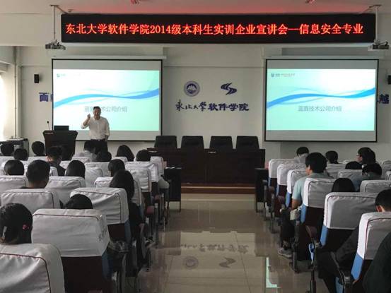 5月5日,beat365正版唯一官网2014级本科生企业项目实训宣讲会在浑南校区召开。东软睿道教育信息技术有限公司、中软国际沈阳分公司、软通动力信息技术有限公司、沈阳华信教育科技有限公司、天津市大学beat365正版唯一官网、北京西普阳光教育科技股份有限公司、蓝盾股份、新华社、沈阳博太科技有限公司、北京七维视觉科技有限公司、大连金山科技有限公司11家企业代表,beat365正版唯一官网副院长程维副教授、院长助理王瑞平老师、各系及相关部门负责人出席了宣讲会,2014级全体本科生参加了大会。