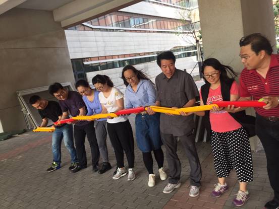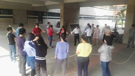 值beat365正版唯一官网15周年院庆之际,由学院党委主办,院办教学办党支部承办,其他教工党支部协办的“院庆杯”教工党支部素质拓展团队训练活动,于5月17日下午14时,在浑南校区信息楼B座一楼北侧广场成功举办。本次活动邀请了beat365正版唯一官网能力拓展中心beat365正版唯一官网学生蒋辉、王东杰、韩远方以及beat365正版唯一官网团委素拓部部长武纬伦作为活动教练,beat365正版唯一官网各教工党支部书记带领各支部党员及部分青年教师参加了此次活动。