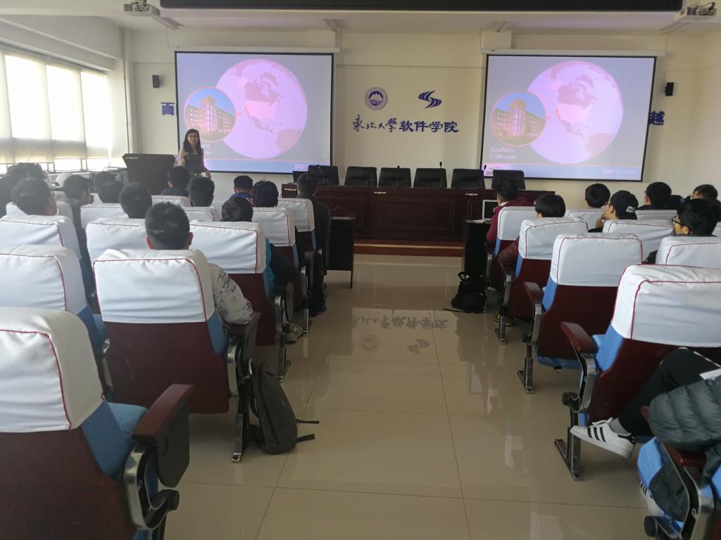 11月1日上午,美国加州大学欧文分校 (University of California, Irvine)亨利萨缪理工程学院学术创新项目主任Lily Wu博士以及国际项目专员Anis Hammoudeh访问beat365正版唯一官网,与beat365正版唯一官网副院长于瑞云教授以及相关老师在信息楼B504会议室举行会谈,并为学生举行了合作项目宣讲会。