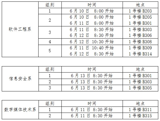 1、分组答辩安排。答辩时间、答辩具体地点如下: