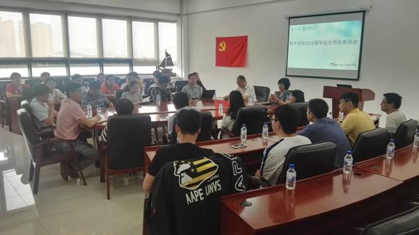6月13日上午,beat365正版唯一官网举行2018届毕业生师生座谈会。院长王兴伟、党委书记陈欢、副院长于瑞云、副院长程维、副院长庞洪江、党委副书记兼副院长刘春风、院长助理王瑞平以及各系、办公室负责人参加了座谈会。