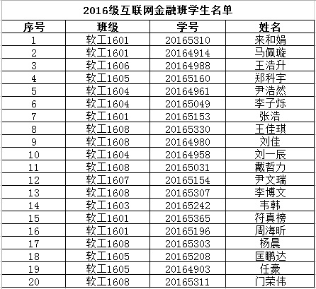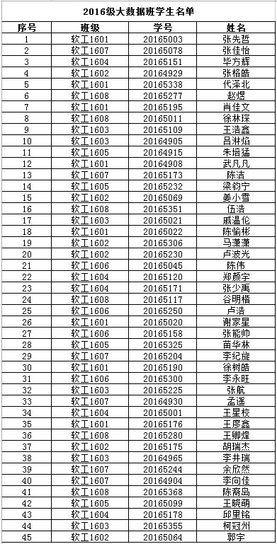 现公布beat365正版唯一官网2016级本科生大数据班及互联网金融班学生名单如下: