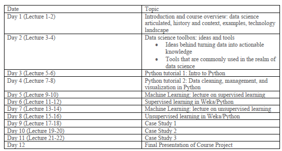 这个实验班包括2个星期的讲座。教学方法包括讲课、讨论和动手数据评估、分析和演示。本课程的目标是: