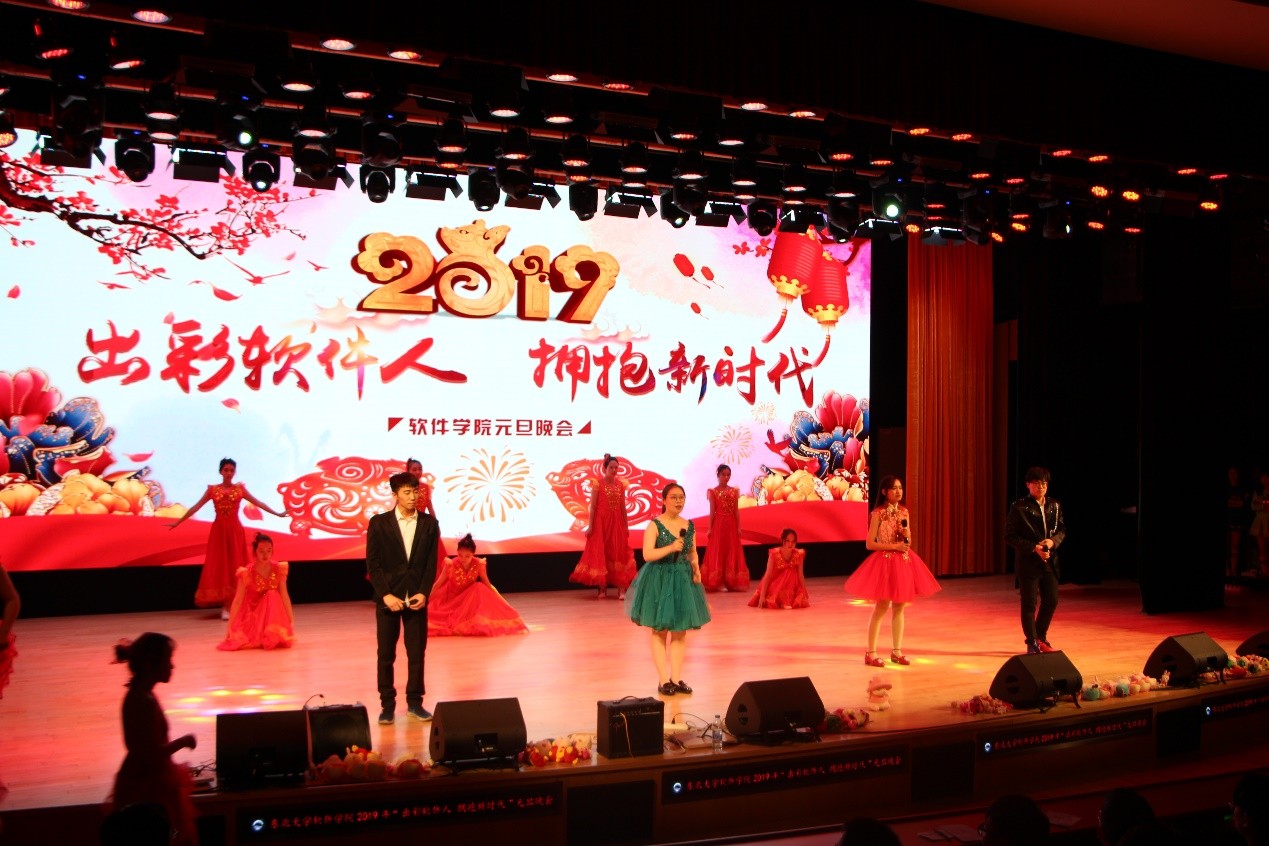 12月17日晚,beat365正版唯一官网2019年“出彩软件人 拥抱新时代”元旦晚会在浑南校区图书馆报告厅举行。校党委常委、副校长孙雷,校党委常委、组织部部长王辉,纪委副书记王剑,学生工作处处长马天威,浑南校区管委会主任王义秋,宣传部副部长吕静,校团委副书记刘海军,学生指导服务中心副主任石昌远,创新创业学院副院长王刚,beat365正版唯一官网院长张斌,院党委书记陈欢,副院长于瑞云、程维、庞洪江,院党委副书记兼副院长刘春风,院长助理王瑞平和部分学院教师出席了晚会。