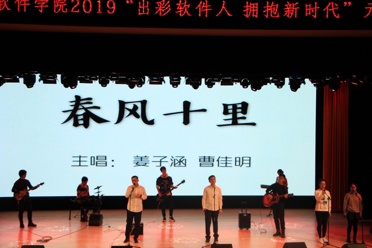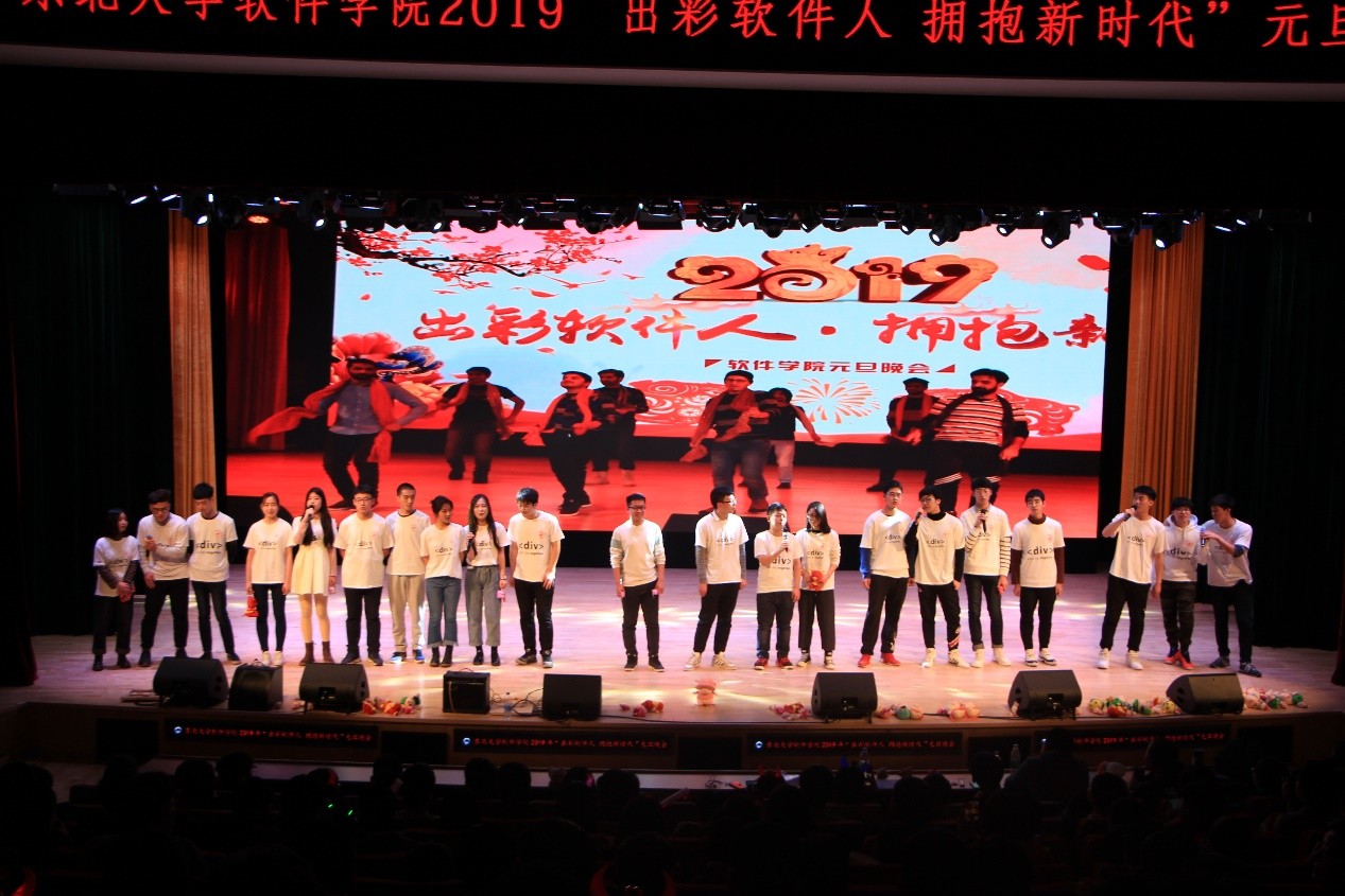 元旦晚会分为筑梦软件人、开启新征程、拥抱新时代三个篇章,涵盖乐器类、语言类与歌舞类等表演形式,包括独具创意的音乐电台、别有韵味的民舞表演、令人捧腹大笑的相声、体现精神风貌的班集体展示、留学生的特色节目、青年教师代表的精彩舞蹈等17个节目,并设置了抽奖环节。