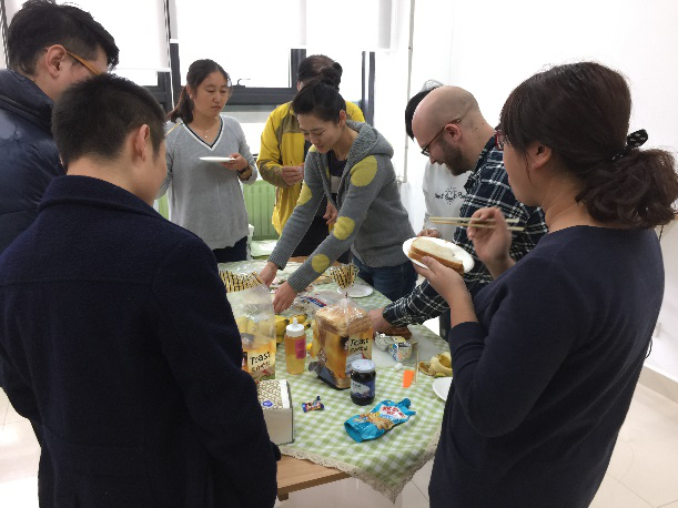 活动于中午12:30正式开始,活动开始后,Taylor首先为大家展示了4种经典三明治的制作方式,之后,各位老师亲自动手尝试制作,并在Taylor教授的制作方式上大胆创新,制作出风格各异的三明治。制作结束后,大家一起分享劳动果实,几种创新方式的三明治还受到了广泛好评,活动在轻松愉悦的氛围中开展,并圆满结束。