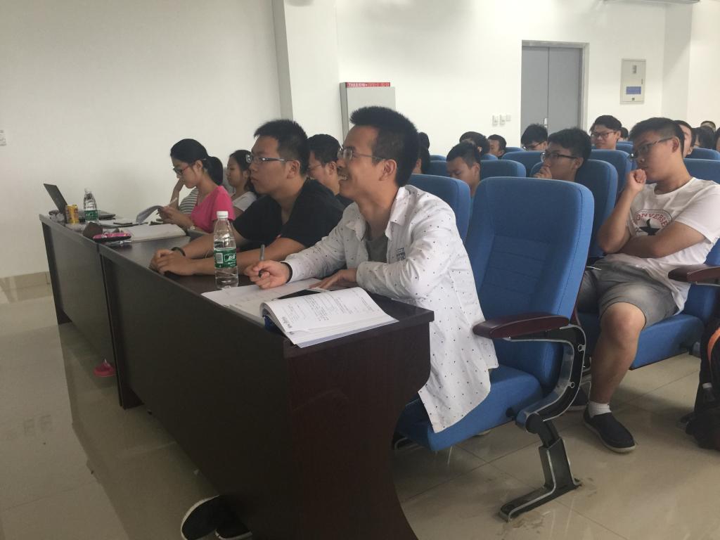 讲座持续至中午12:30,此时已是加州时间的夜晚10:30,全体同学起立为两位学长鼓掌表示感谢。