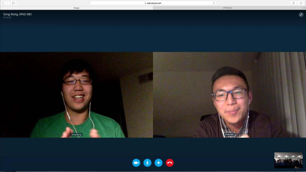 上午10点40,报告会准时开始,主席台却空无一人,只有一台连接到大屏幕的笔记本电脑。当身在美国加州的两位学长出现在会议室大屏幕,同学们激动不已,纷纷报以热烈的掌声。