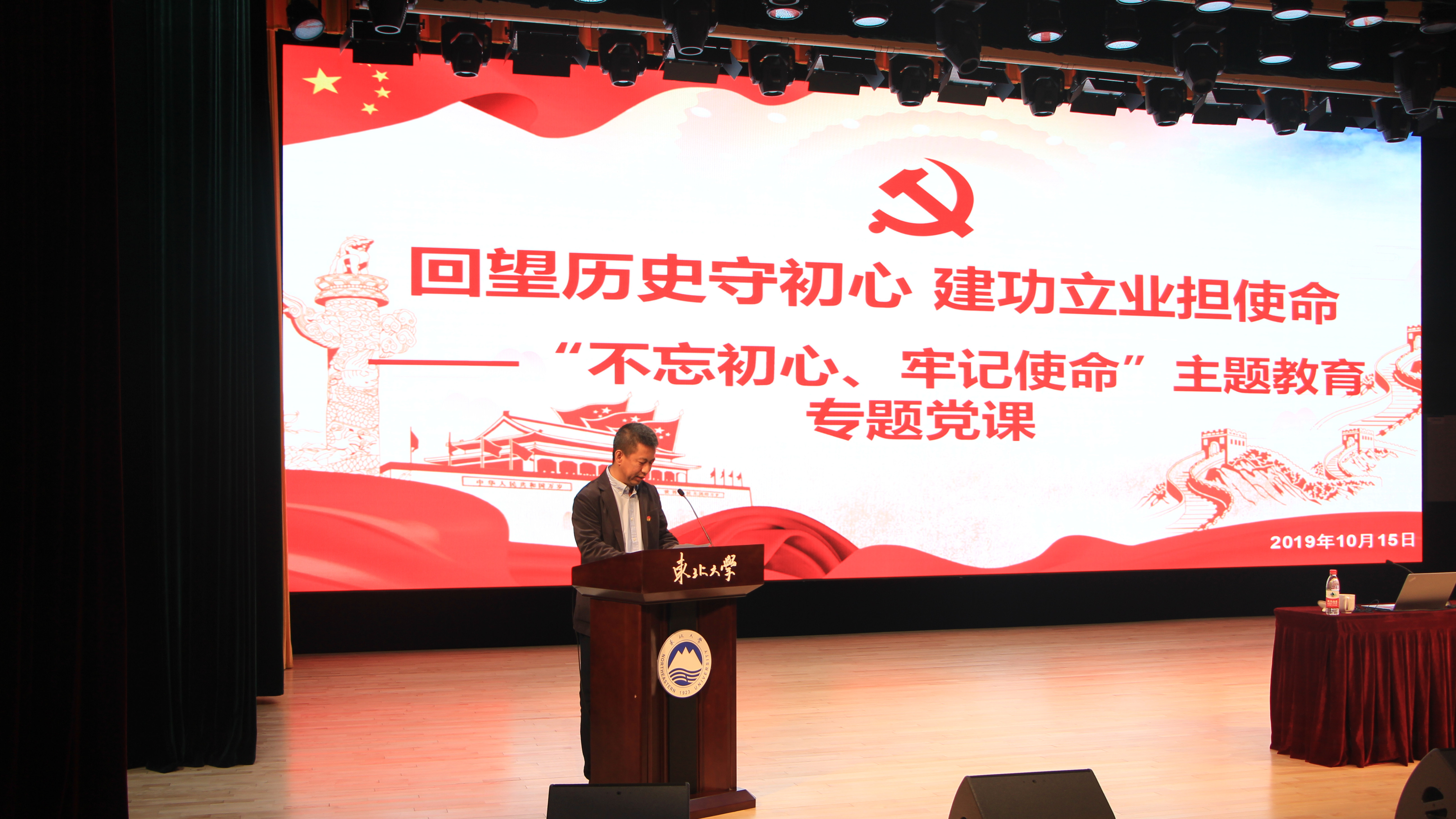 10月15日下午,副校长孙雷在浑南校区图书馆报告厅为基建管理处、对外联络与合作处、浑南校区管理委员会、沈河校区管理委员会、继续教育学院、beat365正版唯一官网、工商管理学院等七个部门讲授“回望历史守初心建功立业担使命”专题党课。beat365正版唯一官网党委书记滕超主持专题党课,七个部门共计570名师生党员参加专题党课学习。