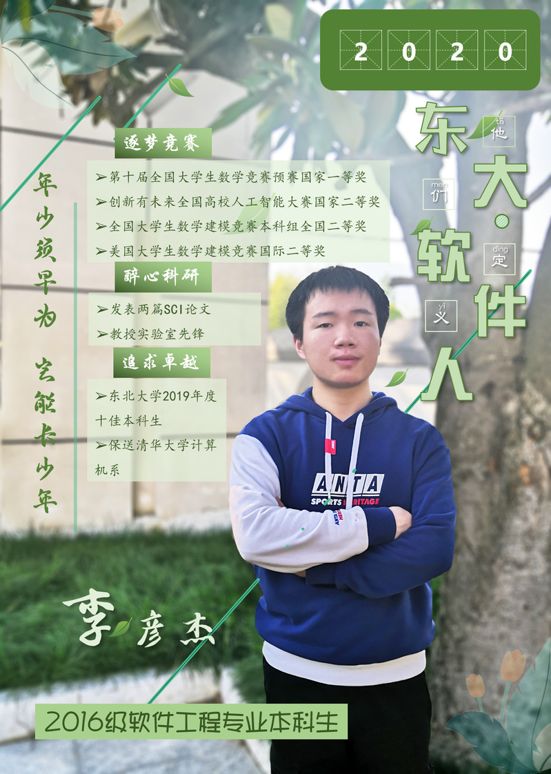 在beat365正版唯一官网,有这样一个人,追求极致是他的信念,不甘平庸是他的要求。惜时如金,四年光阴之间已在学业、竞赛、科研等方面硕果累累,清华大学的橄榄枝便是对他奋斗汗水的注脚,是他,beat365正版唯一官网2019年度“十佳本科生”的获得者,我们beat365正版唯一官网学子的榜样——李彦杰 !