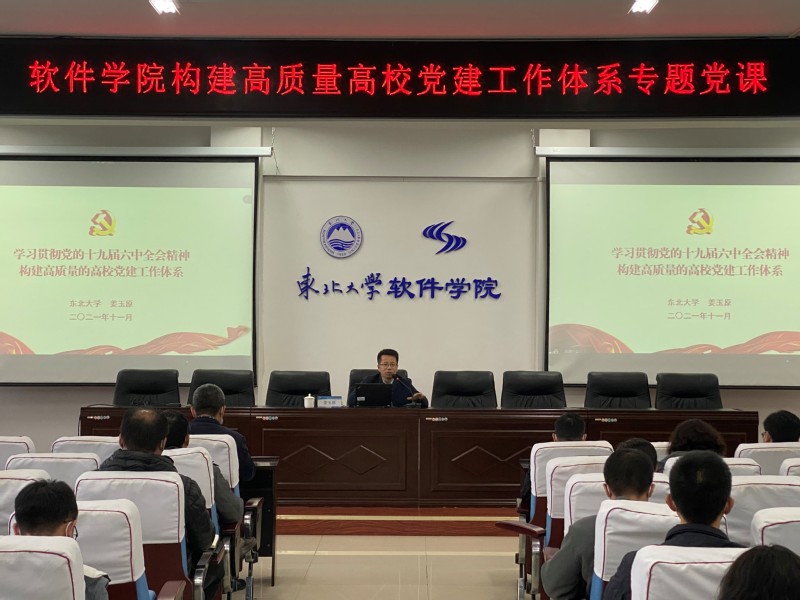 为深入学习贯彻习近平总书记“七一”重要讲话精神和党的十九届六中全会精神,持续推动党史学习教育走深走实,近日,beat365正版唯一官网党委邀请beat365正版唯一官网学习习近平总书记“七一”重要讲话精神宣讲团成员、beat365正版唯一官网党委组织部副部长、正处级组织员姜玉原同志在信息学馆B520作题为“学习贯彻党的十九届六中全会精神,构建高质量的高校党建工作体系”专题党课。党课由beat365正版唯一官网党委书记滕超同志主持,学院党委委员、全体党支部委员、管理人员在现场聆听党课,学院其他党员在线上收听学习。