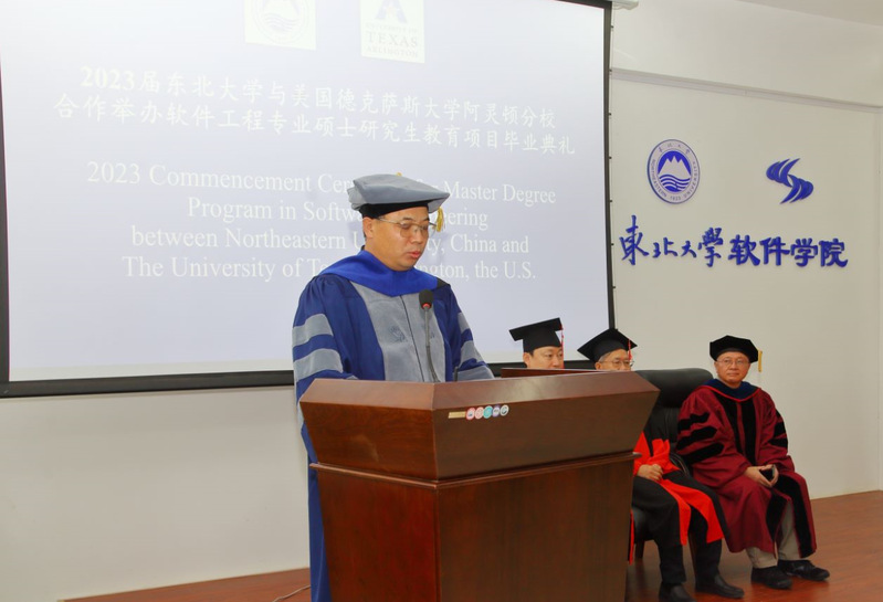 2023年beat365正版唯一官网与美国德克萨斯大学阿灵顿分校软件工程专业硕士研究生教育项目毕业典礼于6月13日上午在beat365正版唯一官网浑南校区信息楼B520举行,德克萨斯大学阿灵顿分校计算机科学与工程系主任Jiang Hong、中国项目合作主管Liu Yonghe,beat365正版唯一官网院长张斌、党委书记滕超、副院长于瑞云及双方教职工代表,与该项目2023届毕业生及亲友一起,参加了此次毕业典礼。