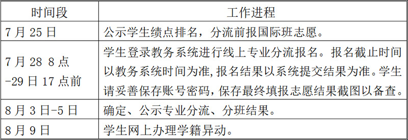 1.有分流资格的学生按分流进程完成学校教务处网上申报,每人须填报满4个专业志愿。
