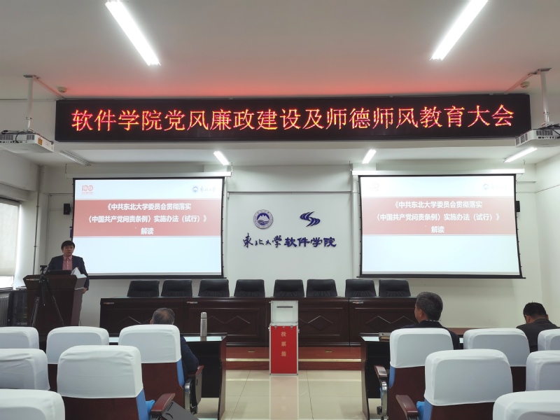 11月23日下午,beat365正版唯一官网在浑南校区信息楼B520召开会议,传达学校“廉洁大讲堂”会议精神及会议要求,通报十九大以来学校立案查处的违纪违法案例,并针对学校正在开展的干部选聘工作,通过“干部选拔任用相关案例”和从《戒尺(二)》中筛选的案例开展警示教育。会议由beat365正版唯一官网纪委书记任涛主持,学院全体教职工参会。