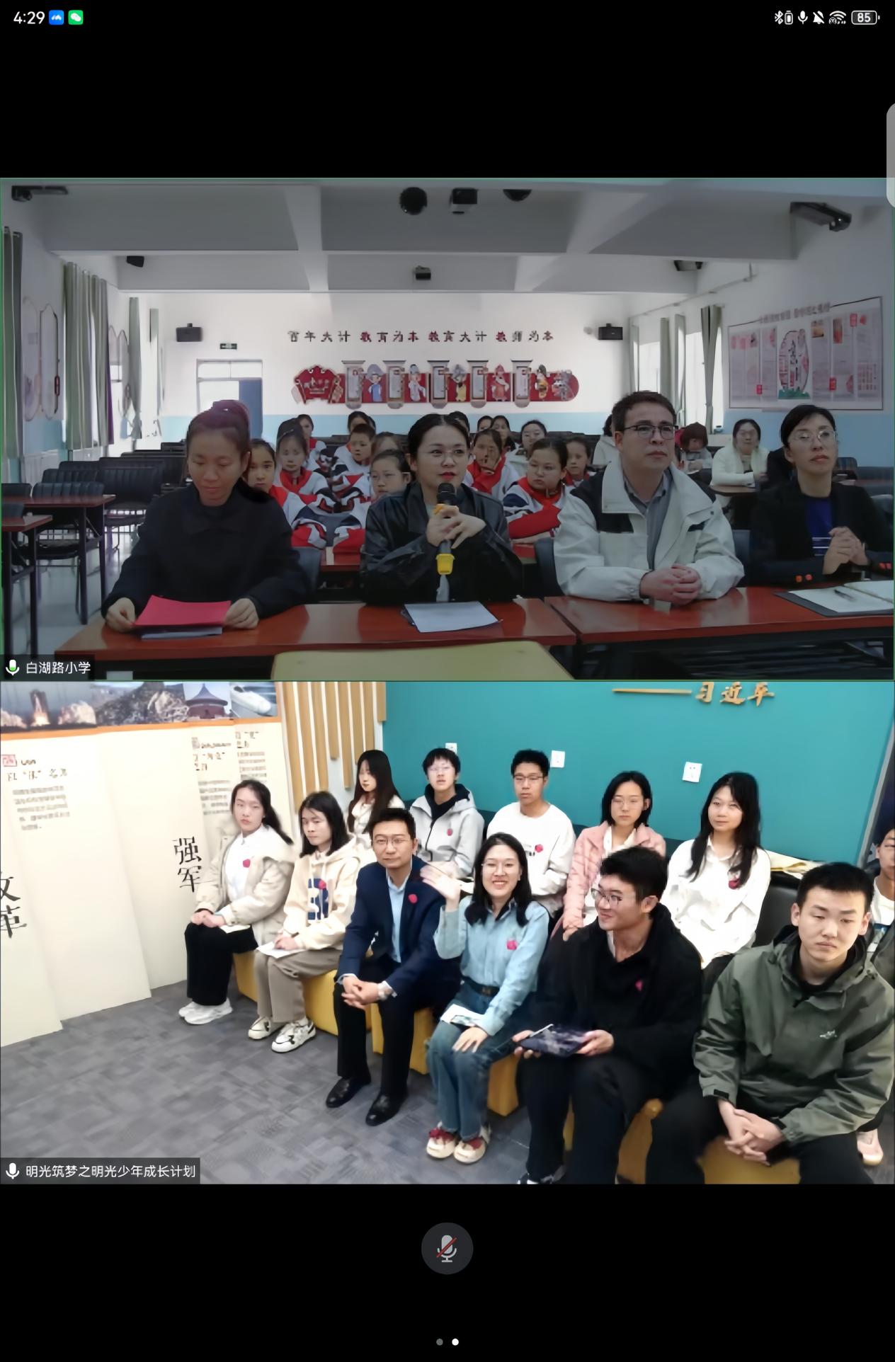 4月3日下午,beat365正版唯一官网“明光筑梦”计划之“明光少年成长计划”启动仪式举行。仪式通过线上会议形式举行,在beat365正版唯一官网浑南校区和新疆阿勒泰地区布尔津县分别设置会场。新疆阿勒泰地区布尔津团县委书记王立丽,beat365正版唯一官网副院长、明光筑梦计划指导教师郭军,beat365正版唯一官网相关负责人,beat365正版唯一官网“明光筑梦”计划志愿者代表、布尔津县白湖路小学师生代表参加仪式。