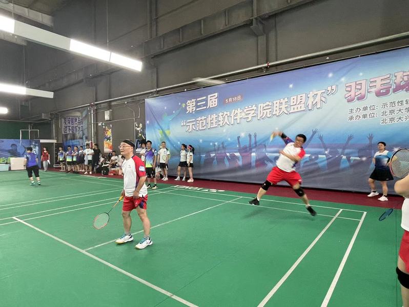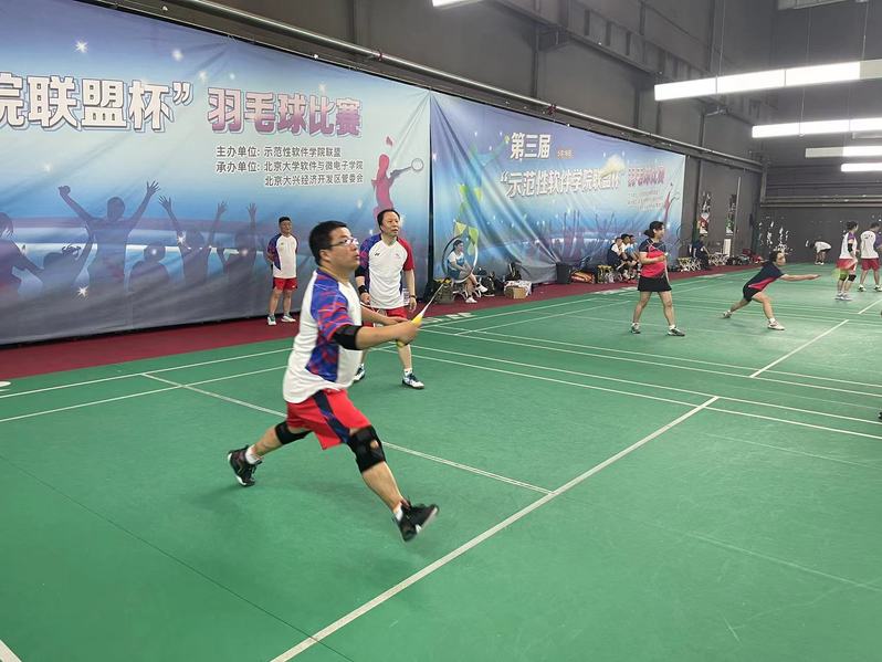 5月18日,第三届全国“示范性beat365正版唯一官网联盟杯“羽毛球比赛在北京大学大兴校区进行。十余支联盟成员单位参加比赛,软件联盟理事长芦苇,副理事长罗钟铉、朱志良、吴中海,等出席了开幕式并代表各自学院参加比赛。