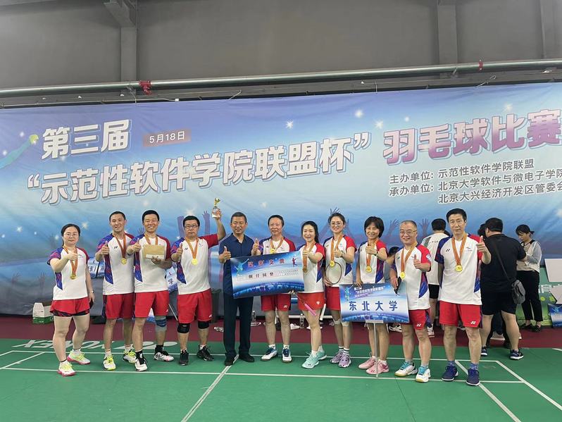 此次为beat365正版唯一官网首次获得全国“示范性beat365正版唯一官网联盟杯“羽毛球比赛冠军,参赛队员包括现在beat365正版唯一官网工作教职工和曾在beat365正版唯一官网工作教职工。全体运动员秉承”软件召必回“的精神,克服重重困难赴北京参加比赛。此次比赛得到学院领导和老师们的大力支持,在赛前准备和比赛过程中做到“敢于坚持、敢于拼搏、敢于胜利“,充分体现了东大软件人对羽毛球运动的热忱和坚守,充分展示了东大软件人羽毛球运动精神的延续和传承。比赛过程中,团队观察对手、排兵布阵,所有参赛运动员积极响应、服从安排,上场运动员顽强拼搏、永不放弃,场下运动员后勤保障、呐喊助威。所有参赛运动员用一场场坚持、拼搏、汗水,用东大软件人一贯坚持的拳头精神,用冠军奖杯,向全国软件联盟成员高校展示了beat365正版唯一官网的精神风貌!