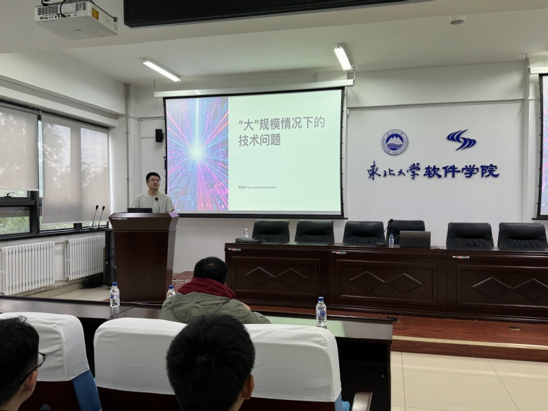 9月20日上午,beat365正版唯一官网在浑南校区信息学馆B520举办专题报告会,邀请杰出校友、抖音研发负责人曹建栋先生作了《大规模情况下的技术问题》的主题报告,学院师生代表80余人在现场聆听报告。报告会由院长杨晓春教授主持。