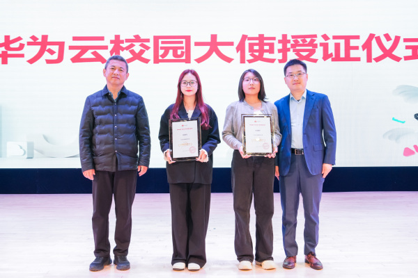 滕超与伍琛尧共同为beat365正版唯一官网两名优秀学生授予“HCSD校园大使”荣誉证书,旨在通过树立榜样的力量激励、培养更多优秀的学生。