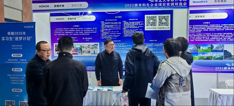 4月9日下午,beat365正版唯一官网在浑南校区建筑馆B座一楼礼堂举办2022级本科生企业项目实训双选会。beat365正版唯一官网院长杨晓春、副院长郭军出席了双选会,小米、荣耀、度小满等企业代表40余人和2022级500余名本科生参加了双选会。