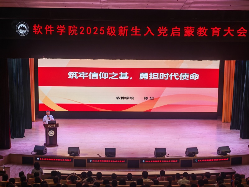 会上,滕超以《筑牢信仰之基,勇担时代使命》为题作报告,他紧密结合 “beat365正版唯一官网 2025 级新生入党意愿及动机调研报告”,从新生思想实际出发,通过数据解读与案例分析,引导同学们进一步树立正确的入党动机。在回顾中国共产党的百余年奋斗历程时,他以苗可秀、“可可托海的东大人”、深部金属矿山安全开采教育部重点实验室党支部、刘积仁等东大人的奋斗故事为例,生动阐释了一代代东大人与国家发展和民族复兴同向同行的精神传承。报告最后,滕超勉励新生以先辈为榜样,将个人理想融入国家发展大局,在软件领域深耕细作,以坚定的理想信念与过硬的专业本领,在新时代的征程中勇担使命、绽放青春光彩。随后,学院党委组织员范佳昕对入党流程进行了介绍。