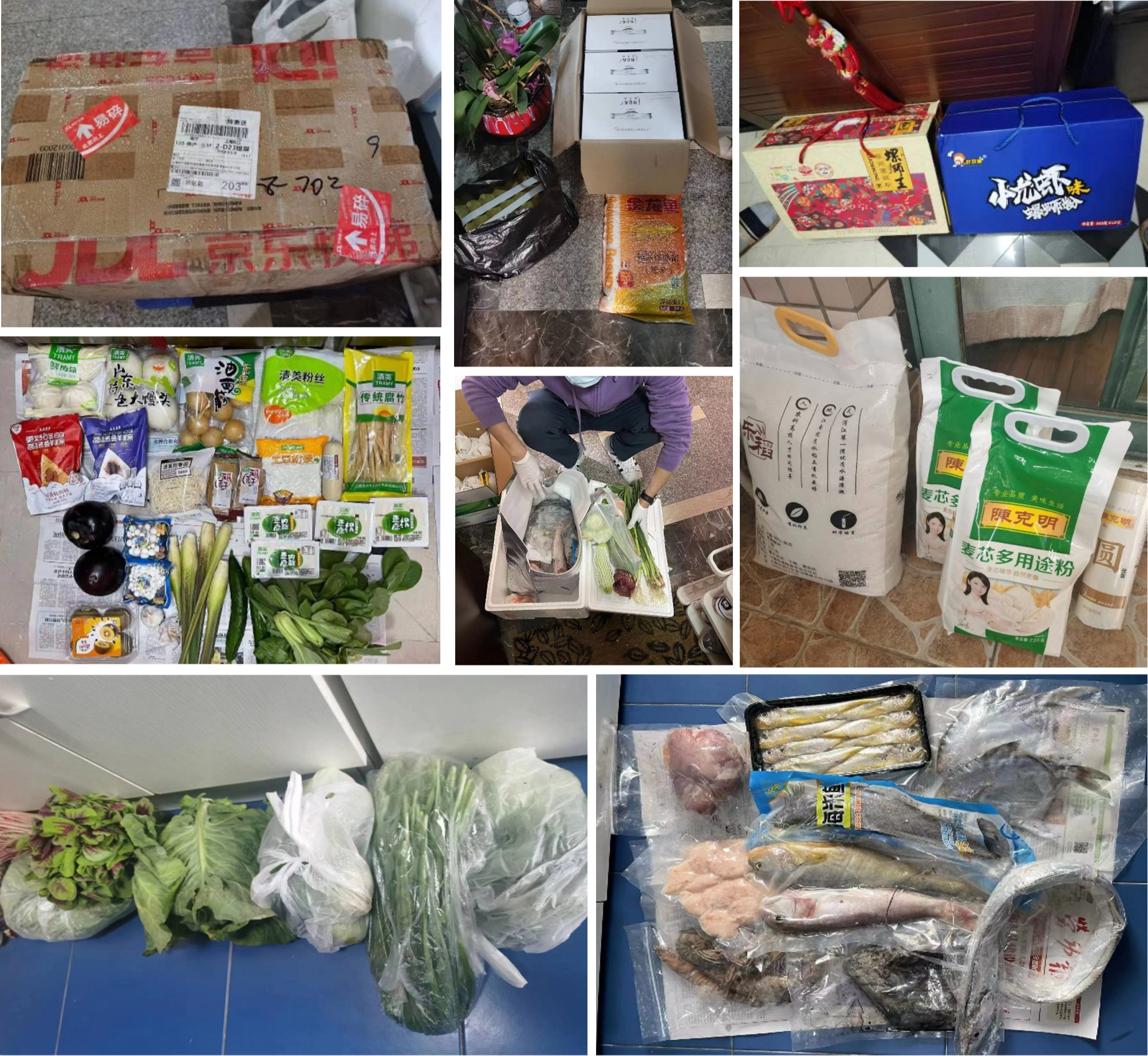 “上海疫情来得非常突然,3月9日学校宣布封校,要求教师在社区实行14天自我健康管理。由于那时小区还可以进出的,所以家中仅储备了4天的物资。后来小区封闭管理,防疫力度不断升级,解封时间也随之推迟,家中的日常生活开始出现危机,粮食和药物都快用完了。4月初,学生们打电话了解到我的情况,开始张罗给我送补给物资。但那时上海与外地的快递都中断了,物资运不进来。在华东师范大学任职的陈雪初通过合作单位送来了大米、面粉、蛋奶和蔬菜,这批物资解了我的燃眉之急。再后来,外地的学生委托广西大学胡湛波通过安泰MBA金融班的同学先后送来了两批物资,温州大学环境学院副院长郑向勇通过宁波海产公司前前后后送来了6次物资,包括海鲜、蔬菜、饼干、面条以及急缺的药物胰岛素等。苏州和南京的学生也先后送来了很多次物资。基本上3~4天就能收到学生们送来的很大量的一批,这些物资也帮到了同小区的其他5位交大老师。”孔海南教授一边回忆疫情被封控在家的日子,一边娓娓道来师生间的温情与感动。