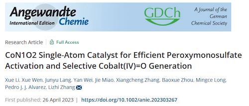 环院智慧|龙明策研究员和张礼知教授Angew. Chem.:钴单原子实现过一硫酸盐高效活化和Co(IV)=O选择性生成