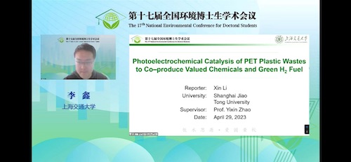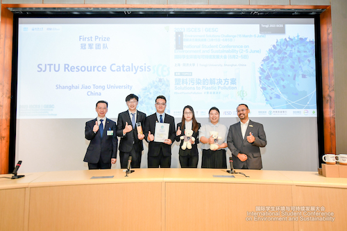 2023年6月5日,国际学生环境与可持续发展大会(ISCES)暨2023全球环境解决方案挑战赛颁奖仪式在同济大学盛大召开,由太阳集团tcy8722的官方网站特聘教授赵一新老师指导,2018级“致远荣誉计划”博士生李鑫带队,2019级“致远荣誉计划”博士生方妍、2019级博士生张婷和2022级博士生蔡诚诚共同参与的研究项目《Photovoltaic-Driven Electrocatalytic Upcycling of PET Plastic Waste Coupled with CO2 Reduction to Coproduce Formic Acid》在来自全球28个国家和地区的125个团队、476名参赛选手中脱颖而出,最终斩获冠军。李鑫及团队受邀出席第十二届国际学生环境与可持续发展大会,并在会上作为中国代表向全球展示塑料污染治理的中国方案和中国智慧。