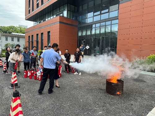6月25日,绿色环境楼开展了启用以来的首次消防演练。伴随着紧急疏散广播,楼内师生通过楼梯有序撤离至楼外空地,在消防科老师的指导下学习了灭火器的种类、工作原理和正确使用方法,并一一进行实操演练。此次活动为参与者提供了实用的知识和技能,帮助师生熟悉了实验室周围应急工具的位置、每个楼层的逃生路线、自救互救相关知识,全面提升了师生的安全知识技能和应急处置能力。