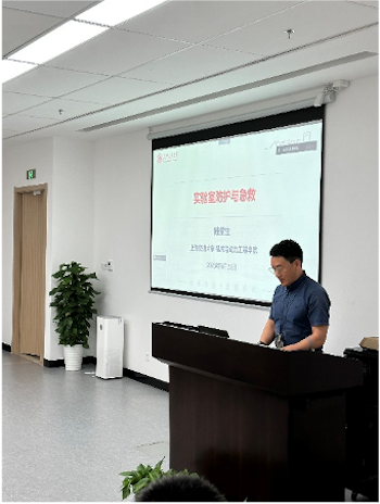 实验室危险源复杂,涉及危险化学品、危险气体、高温高压设备、放射性仪器等各方面,在实验室安全检查和隐患排查方面,学院始终坚守安全红线,压实、压准安全责任。同时,为积极响应安全生产月“个个会应急”主题,结合学校相关工作部署,学院以线上、下相结合的方式组织开展了应急消防安全知识讲座,特邀机械与动力工程学院陆紫生老师和保卫处消防科谢鹏辉老师,分别针对应急安全知识和消防安全知识向师生们进行了科普培训。本次讲座由学院副院长许振明主持。
