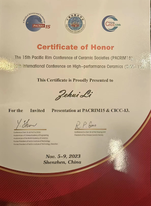 环境学院助理教授李泽晖、博士后王坤婵受邀参加第十五届环太平洋陶瓷会议暨第十三届先进陶瓷国际会议