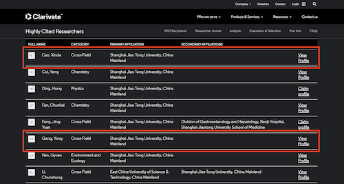 11月15日,科睿唯安发布2023年度“全球高被引科学家”名单,遴选全球高校、研究机构和商业组织中对所在研究领域具有重大和广泛影响的顶尖科学人才。来自全球67个国家和地区1300多个机构的6849名科学家入选2023年度名单,他们的学术成果在多个学科领域具有广泛影响。太阳集团tcy8722的官方网站曹心德教授、耿涌教授、张礼知教授、赵一新教授连续入选该榜单。