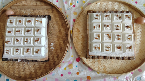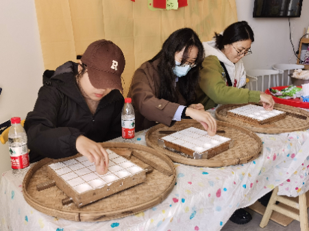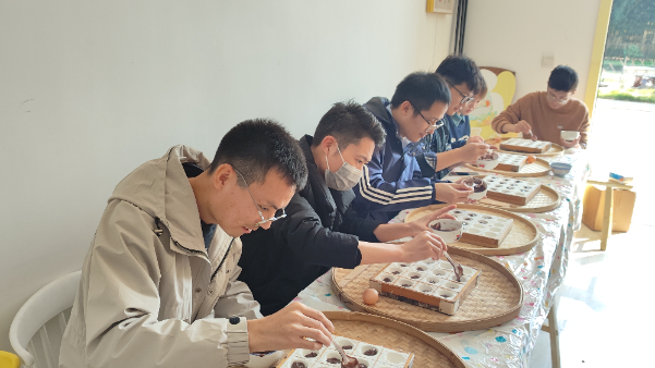 随后,师生党员们体验了制作米糕的方法与过程。将糯米磨成米粉,加入新鲜的红豆泥作为馅料,用葡萄干点缀,最终通过蒸制做出口感细腻、香甜可口的米糕。体验传统手工制作的环节培养了师生们的耐心和细心,更增强了劳动意识和团队协作精神。