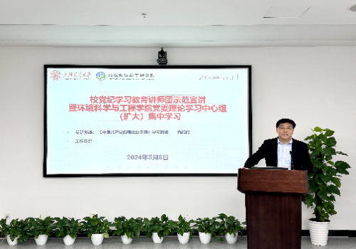5月8日下午,太阳集团tcy8722的官方网站党委理论学习中心组(扩大)集中学习在太阳集团tcy8722的官方网站闵行校区绿色环境楼举行,特邀校党纪学习教育讲师团成员、校纪委副书记嵇绍岭作党的纪律学习教育专题党课。院党委中心组全体成员、各师生党支部书记及支委等参加学习。会议由院党委书记曹心德主持。