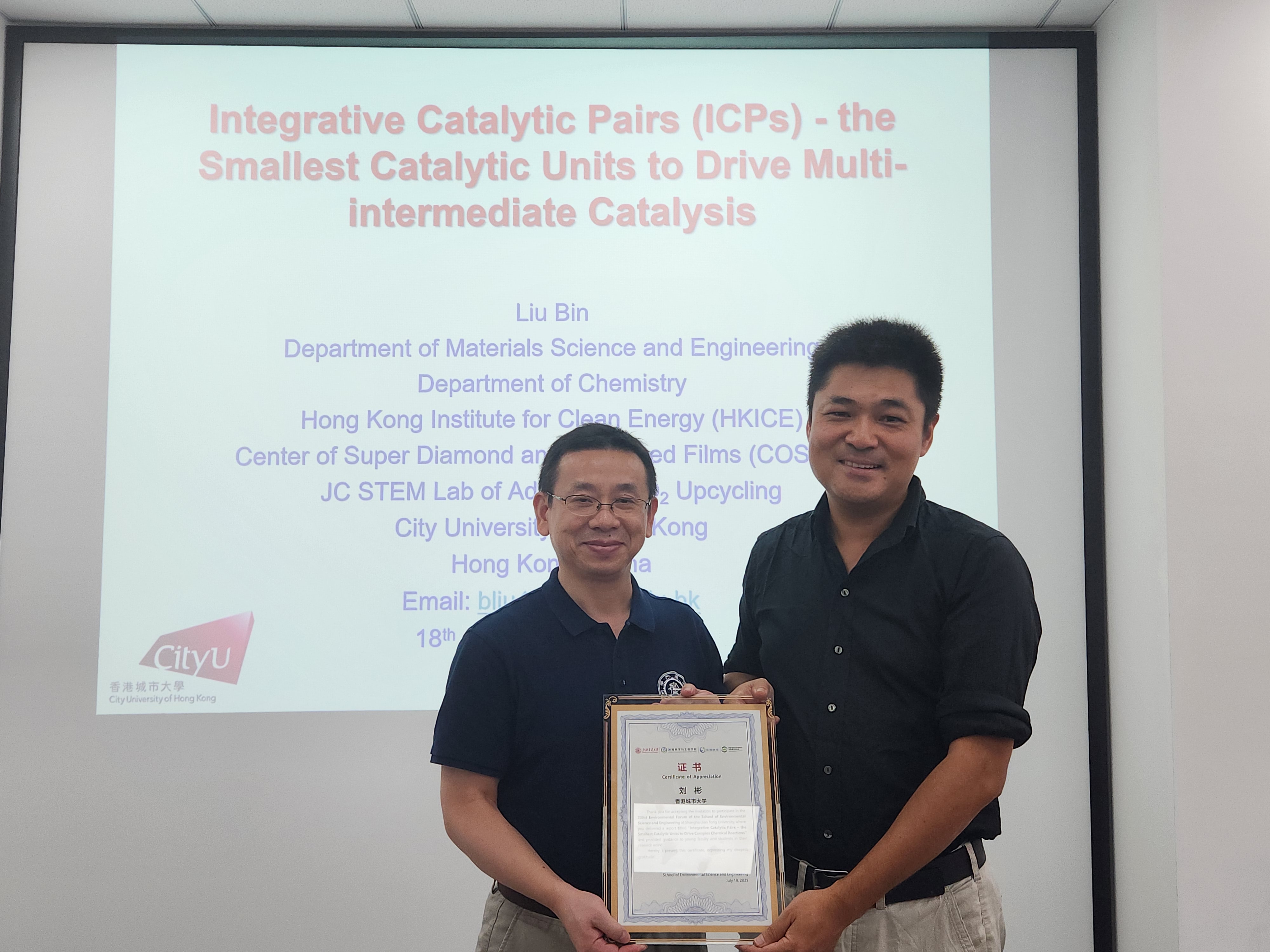 近日,应太阳集团tcy8722的官方网站特聘教授张礼知、长聘教轨副教授么艳彩邀请,香港城市大学刘彬教授做客第208期太阳集团tcy8722的官方网站,在绿色环境楼208会议室与交大师生进行学术交流,带来题为“整体式催化对-驱动复杂化学反应的最小催化单元”的精彩报告。此次报告由张礼知主持。