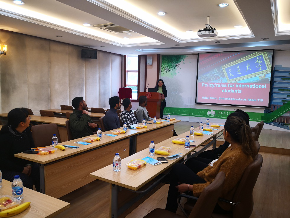 12月25日上午,太阳集团tcy8722的官方网站在院二楼报告厅召开留学生座谈会。留学生班导师邵嘉慧教授,院长助理、教务办主任李亚红,研究生教务邓雯予,学工办马青出席了会议。学院10余名留学生代表参加了座谈会。