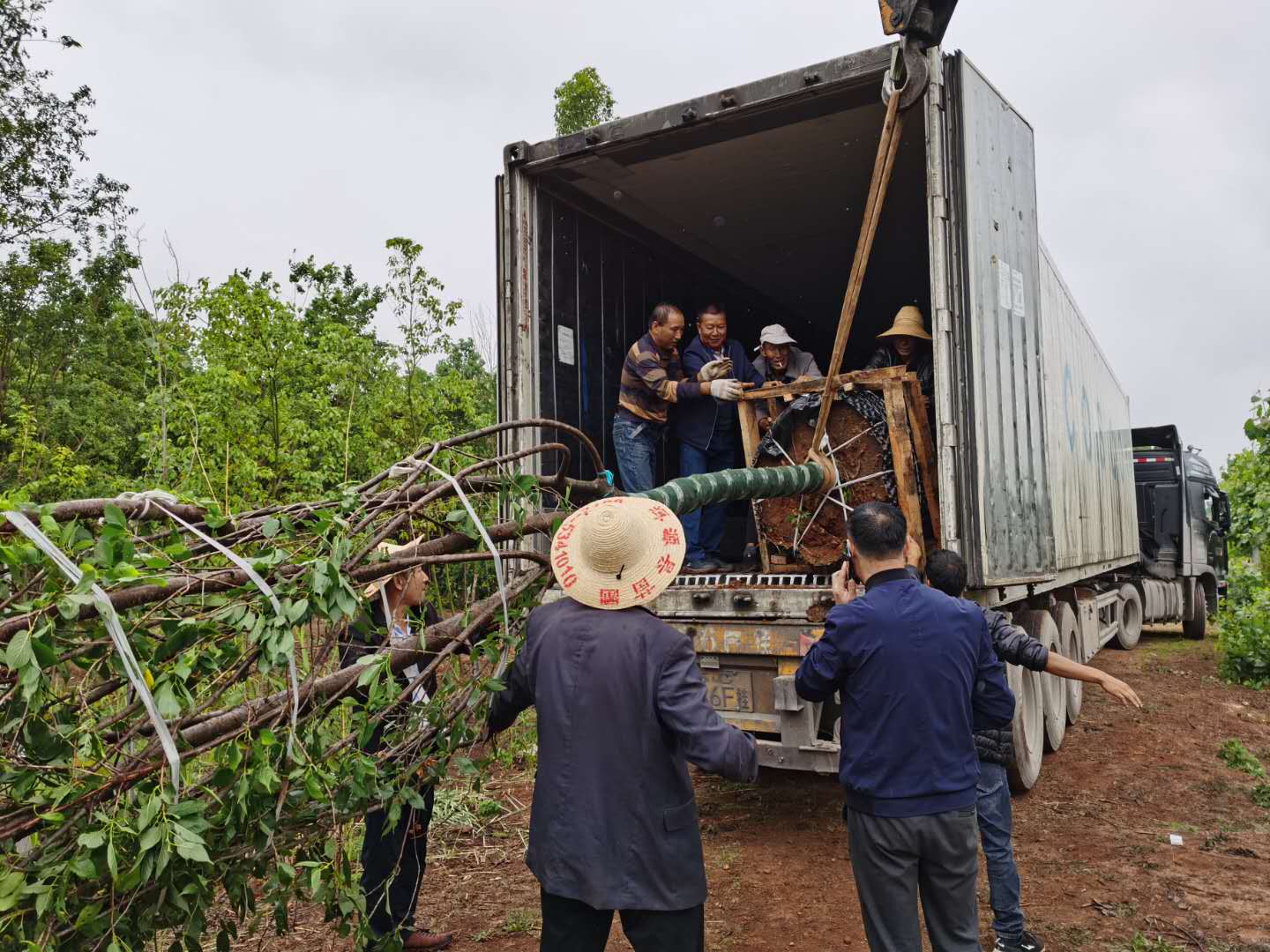 5月21日,洱源县委书记李洋同上海交大环境学院孔海南教授挑选滇樱花树苗,建议立即启运并在6月份之前进行移栽。5月22日,大理大学科技处处长李辉与孔海南教授挑选云南早樱花成树。5月27日,洱源大雨,首批30棵滇樱花树装车出发,目的地:上海。5月31日,一辆从大理洱源县来的冷链货车到达上海交大闵行校园,首批滇樱花树苗成功运抵,立即进行剪枝移栽。