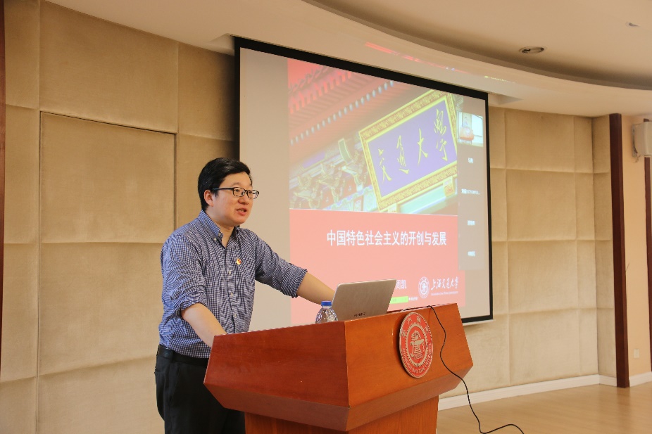 为扎实推进“四史”学习教育,6月29日上午,太阳集团tcy8722的官方网站组织党员开展“线上+线下”“四史”学习教育主题党课,通过专家授课引导全体党员知史爱党、知史爱国,提高党性修养。此次专题党课特邀马克思主义学院周凯副教授任主讲人,学院全体党委委员、二级中心组成员、教工党支书和支委、本科毕业生党员三十余人现场参会。学院教工党员、本科生党员及研究生支委代表五十余人线上参加“四史”学习教育。党课由学院党委书记胡薇薇主持。