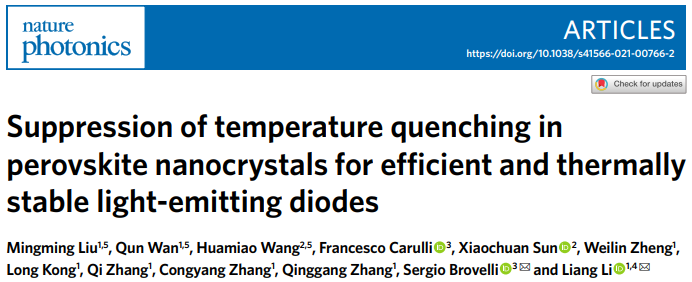 上海交大李良团队Nature Photonics 发文:零荧光热淬灭的钙钛矿量子点制备高效热稳LED