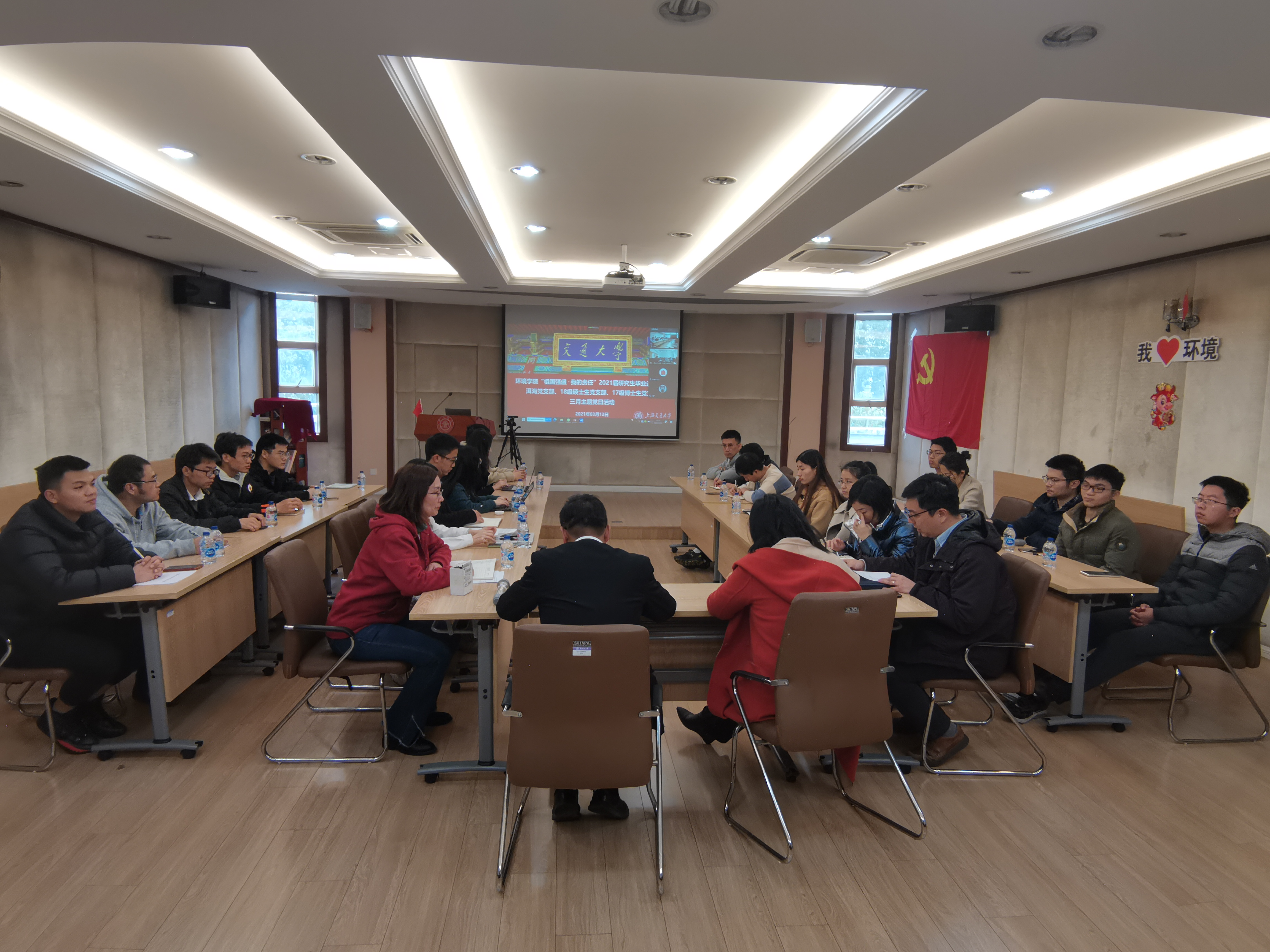 3月12日下午,环境学院在二楼报告厅召开了“祖国强盛,我的责任”2021届研究生毕业远航教育暨洱海湖泊生态系统野外观测研究站党支部(简称洱海党支部)、18级硕士生党支部和17级博士生党支部联合三月主题党日活动。院党委书记胡薇薇、全国脱贫攻坚先进个人王欣泽研究员、团委书记于爱涛、组织员马青参加了会议。会议由党委副书记陈哲主持。