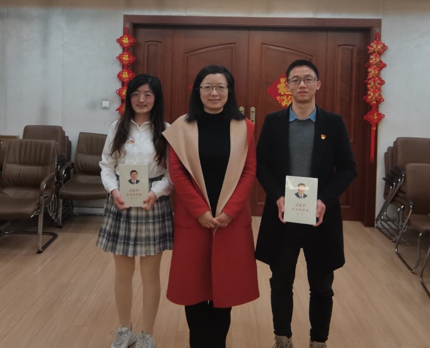学院和毕业生党员互赠礼物。毕业生党员送给学院名为“牛势”的摆件,寓意学院未来的发展牛气冲天,运势如虹,越来越好。学院送毕业生党员《习近平谈治国理政》和建党一百周年定制款茶杯,希望各位党员毕业生无论将来去往何地,都要不忘党员职责,矢志不渝地坚守党的信仰,始终如一地努力发挥自身力量为国家和人民作出贡献。