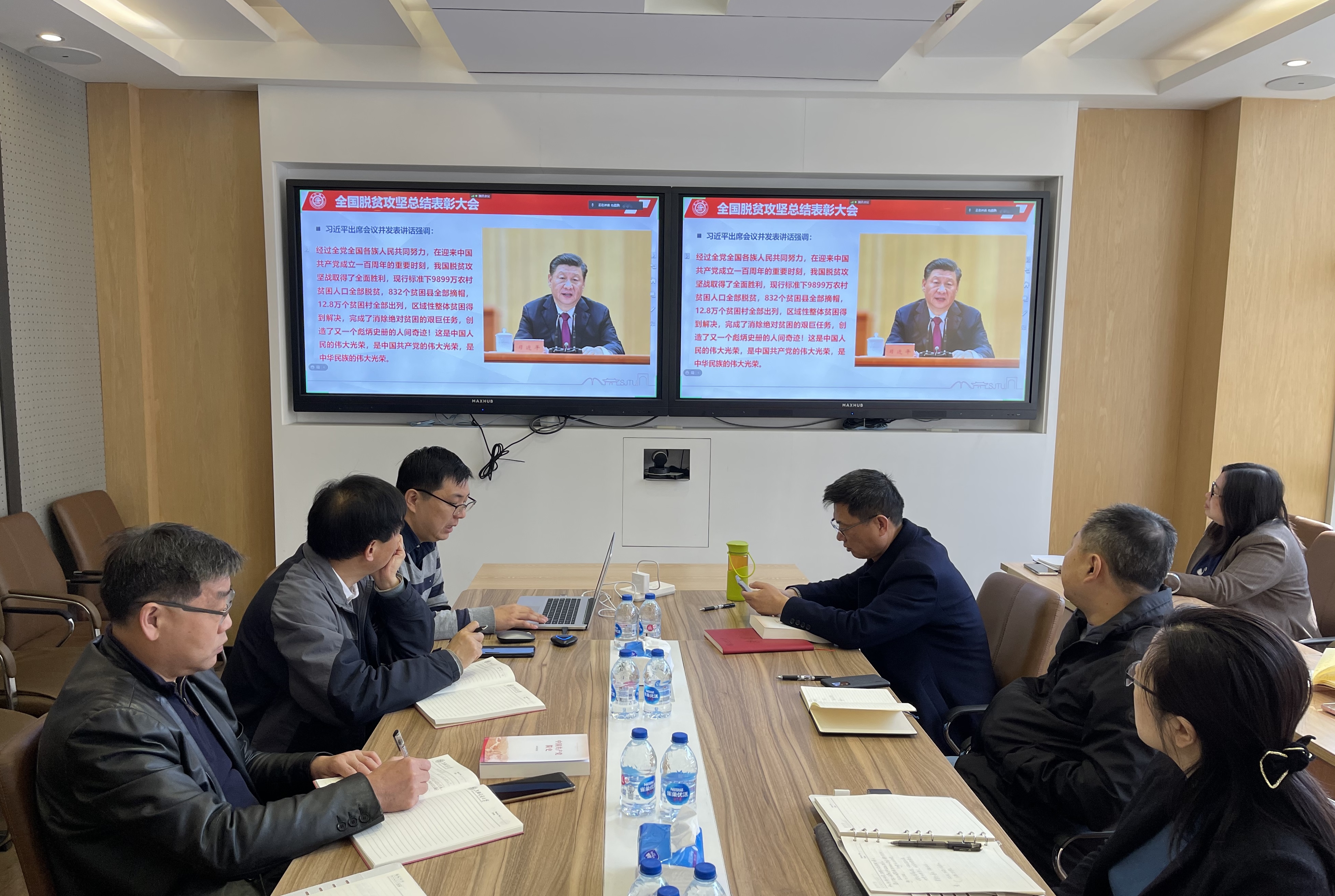 党委副书记陈哲从会议概况、习近平总书记重要讲话精神、媒体评论三部分详细领学了全国脱贫攻坚总结表彰大会重要内容。习近平总书记的重要讲话庄严宣告了脱贫攻坚战取得全面胜利,从全面建成小康社会、实现第一个百年奋斗目标的战略高度,充分肯定了脱贫攻坚取得的伟大成绩,深刻总结了脱贫攻坚的光辉历程和宝贵经验,深刻阐述了伟大脱贫攻坚精神,对巩固拓展脱贫攻坚成果、走中国特色社会主义乡村振兴道路、促进全体人民共同富裕提出了明确要求。