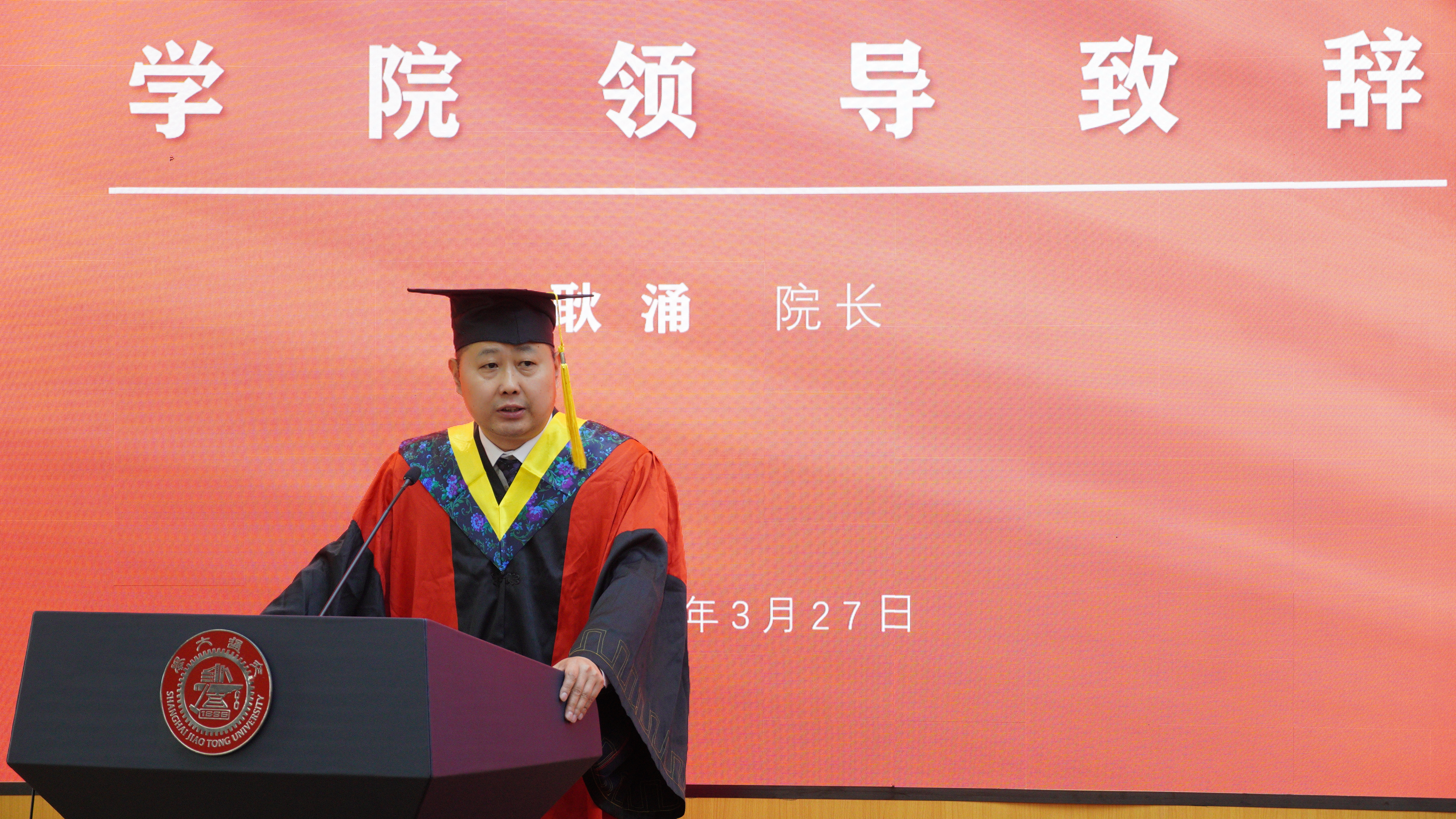 学位授予仪式在庄严的国歌声中拉开序幕。耿涌院长以《祖国需要,我的责任》为主题代表学院致辞。他代表环境学院向圆满完成学业的2021届全体研究生毕业生表示祝贺,向毕业生的老师们和家人们表示感谢,同时对毕业生表达了殷切叮嘱:第一,树立理想,坚定信念;第二,脚踏实地,仰望星空;第三,但行好事,莫问前程!