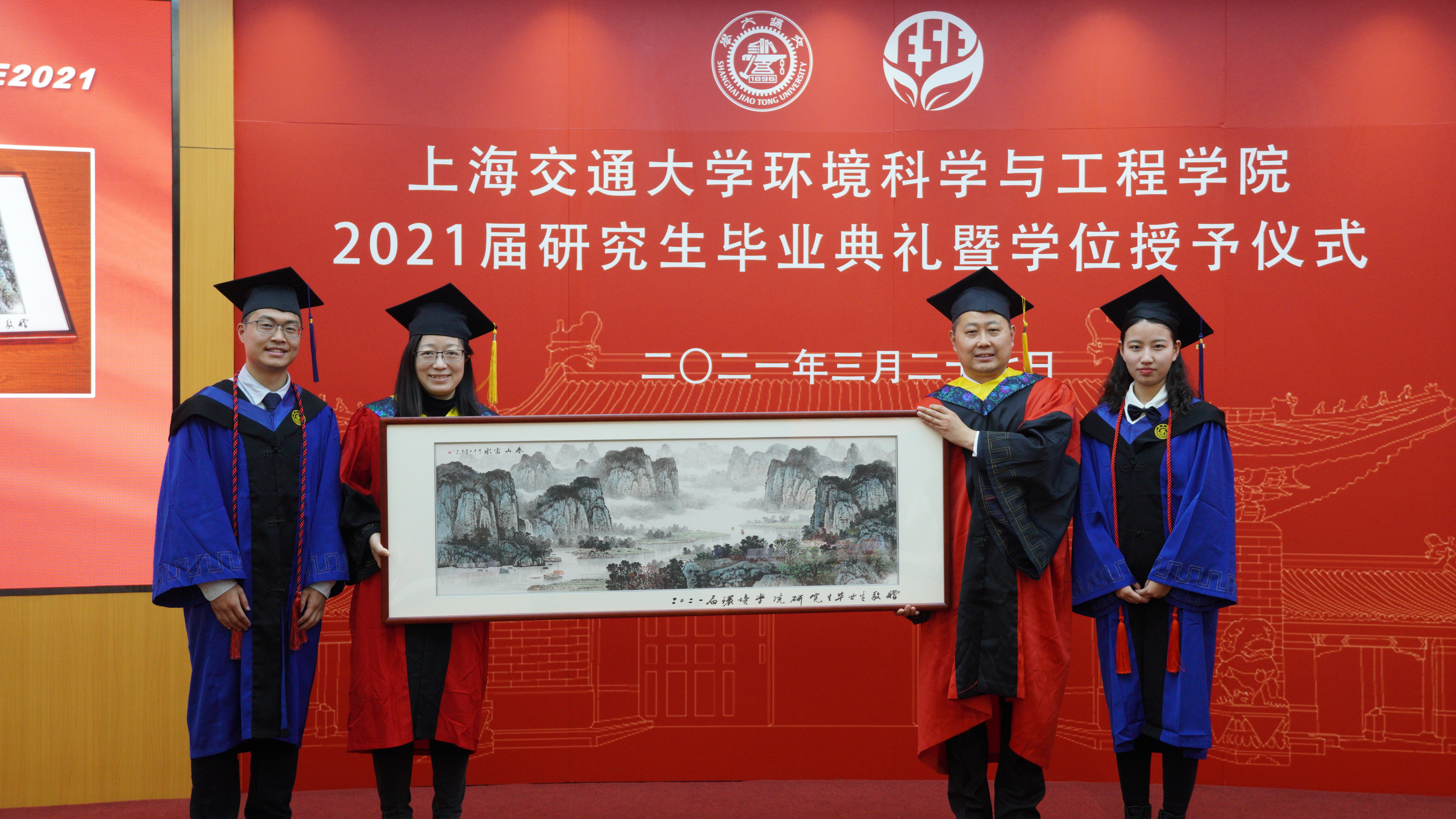 毕业之际,这一届的研究生毕业生为学院献上了礼物。他们集资筹款,送给学院一幅《绿水青山图》,全长1.7米,祝愿学院绿水青山之事业蓬勃发展!