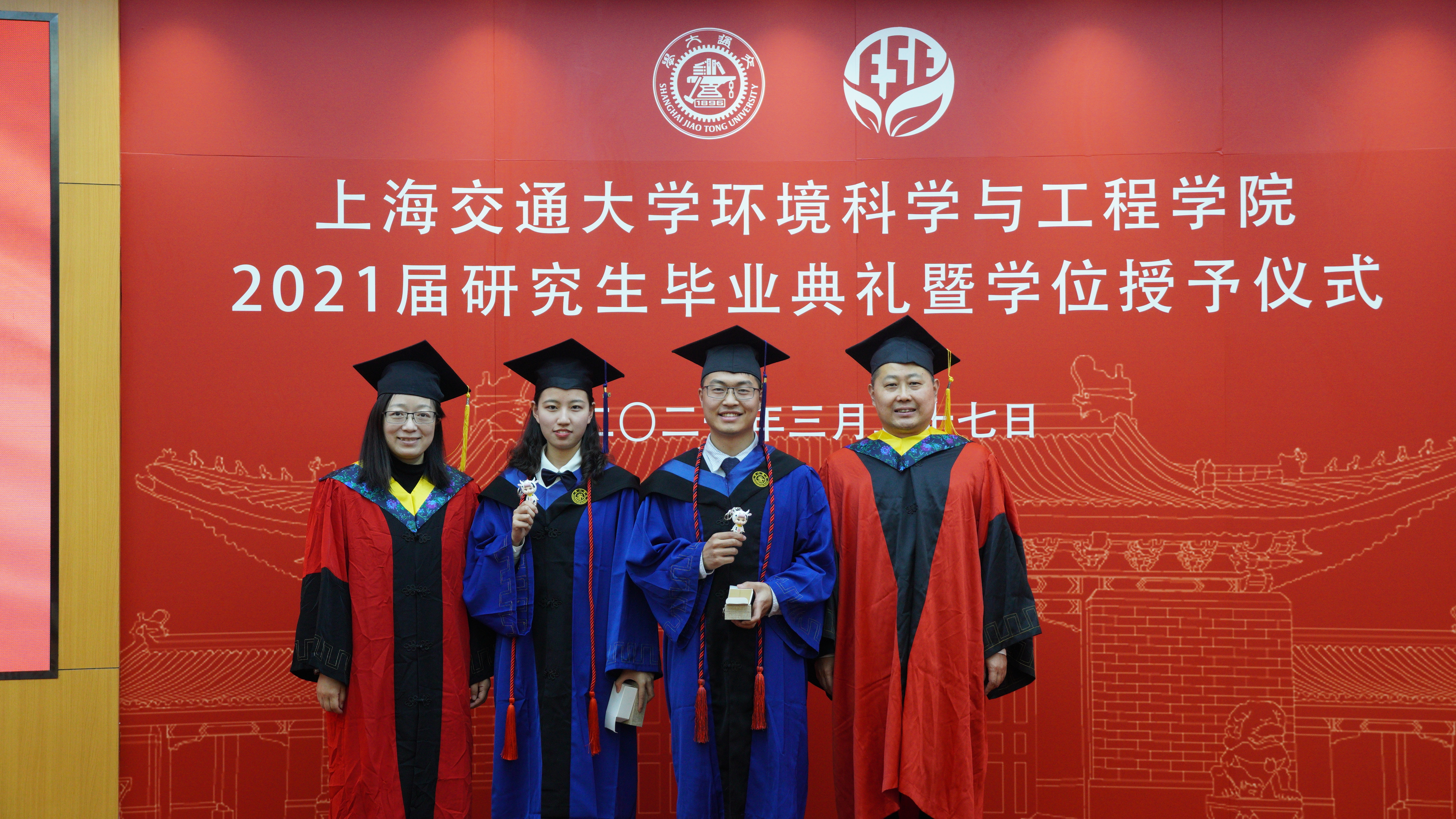 今年,学院也为即将离开校园的同学们精心准备了一份毕业礼物:红檀印章。印章侧面刻有交大的校名、校徽及校训,印章内刻为每一位毕业生的姓名,从此,毕业生的名字与学校紧密相连。中国自古便“以印为信”,寄寓一份无声的承诺与责任。一枚名章,镌刻的是离别之思,远行之嘱,愿同学们莫忘感恩、责任、激情、梦想;愿它能承载母校母院于每一位同学的专属记忆与温情,陪伴同学们未来生命中每个重要的阶段,每个重要的角色。此外,2021届研究生毕业生集体为学院的“环缘基金”进行了捐赠,学院也为同学们准备了一份纪念品“交小牛”。